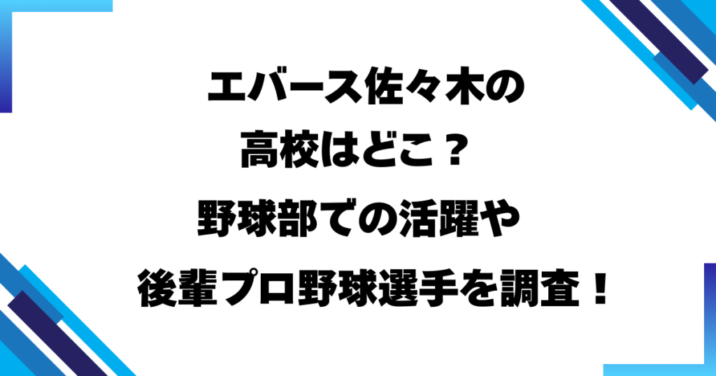 エバース佐々木の高校はどこ?野球部での活躍や後輩プロ野球選手を調査!
