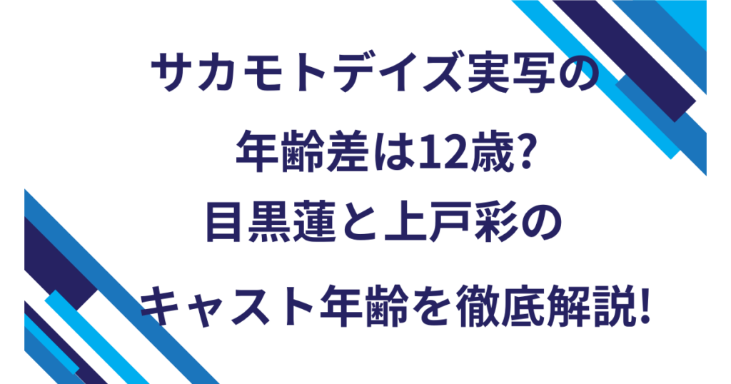 サカモトデイズ実写の年齢差は12歳?目黒蓮と上戸彩のキャスト年齢を徹底解説!