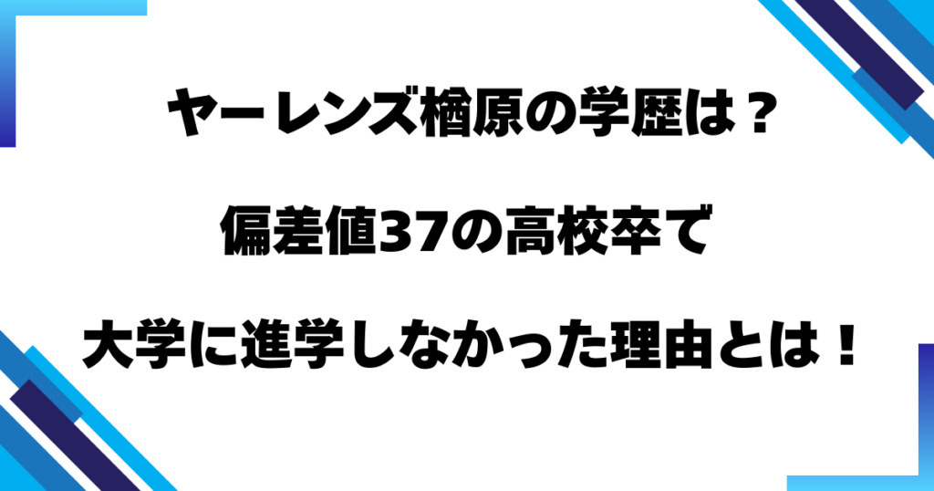 ヤーレンズ楢原の学歴は?偏差値37の高校卒で大学に進学しなかった理由とは!