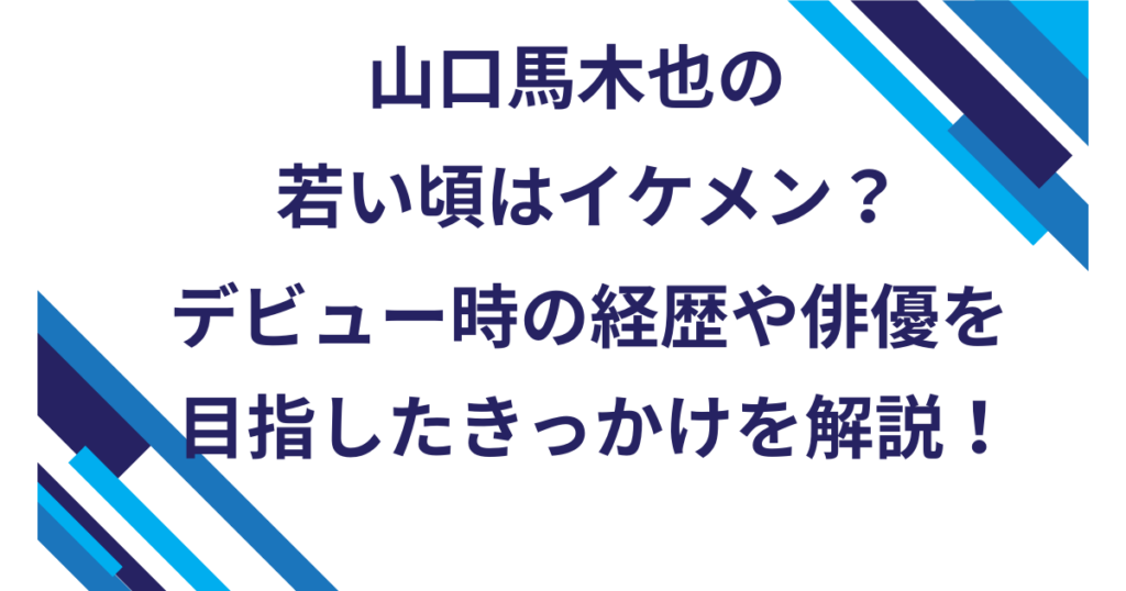 山口馬木也の若い頃はイケメン?デビュー時の経歴や俳優を目指したきっかけを解説!