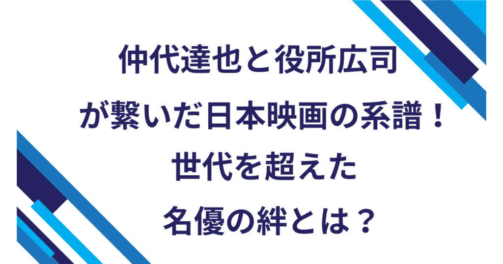 仲代達也と役所広司が繋いだ日本映画の系譜!世代を超えた名優の絆とは?