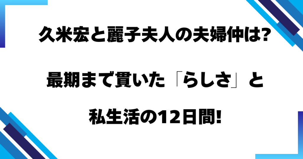 こんにちはNICKです! いつも私のブログを読んでいただきありがとうございます。 今回は、2025年1月1日に肺がんのため79歳で亡くなられた久米宏さんと、麗子夫人の夫婦仲についてお話ししていきたいと思います。 「ニュースステーション」で物言うキャスタ... -
