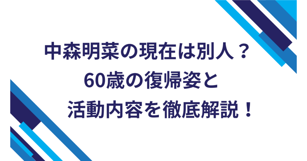 中森明菜の現在は別人?60歳の復帰姿と活動内容を徹底解説!