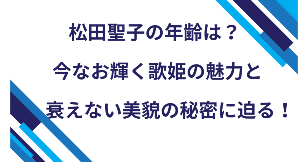 松田聖子の年齢は?今なお輝く歌姫の魅力と衰えない美貌の秘密に迫る!