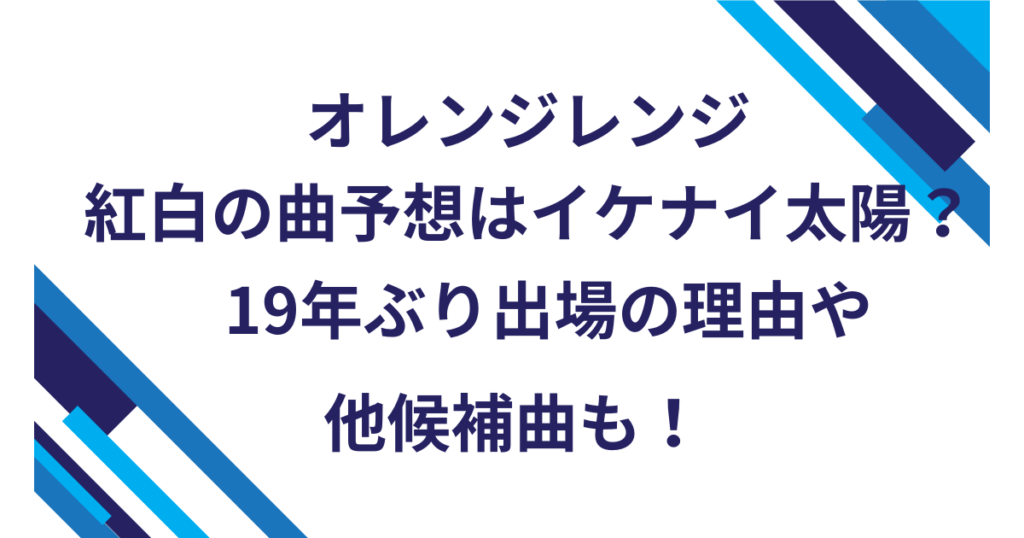 オレンジレンジ紅白2025の曲予想はイケナイ太陽?19年ぶり出場の理由や他候補曲も!