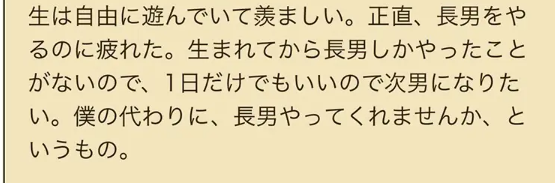 そして長男本人が「正直、長男をやるのに疲れました」と訴えているんですよね。