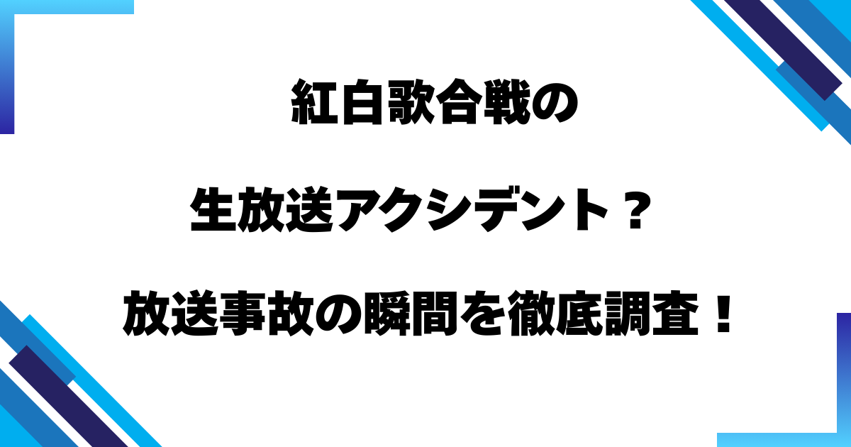 を主に、紅白歌合戦で起きた生放送アクシデントについて徹底的に調査してみました。