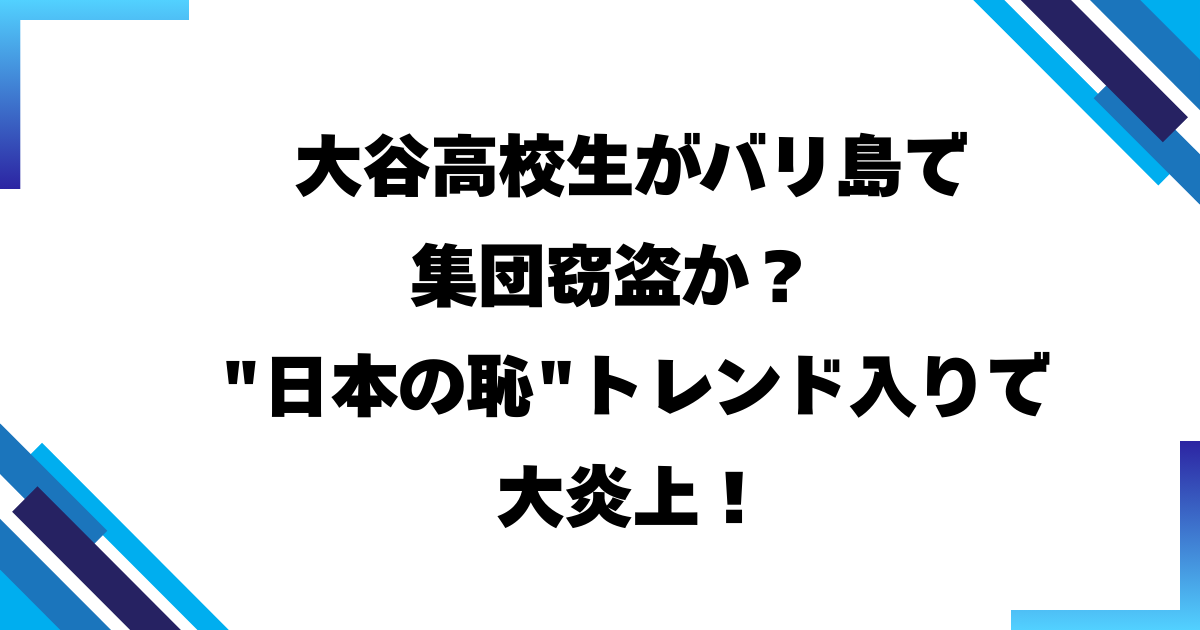 を主に、大谷高校生がバリ島で集団窃盗をした事件の詳細と、なぜここまで大炎上してしまったのかについて詳しく見ていきたいと思います。