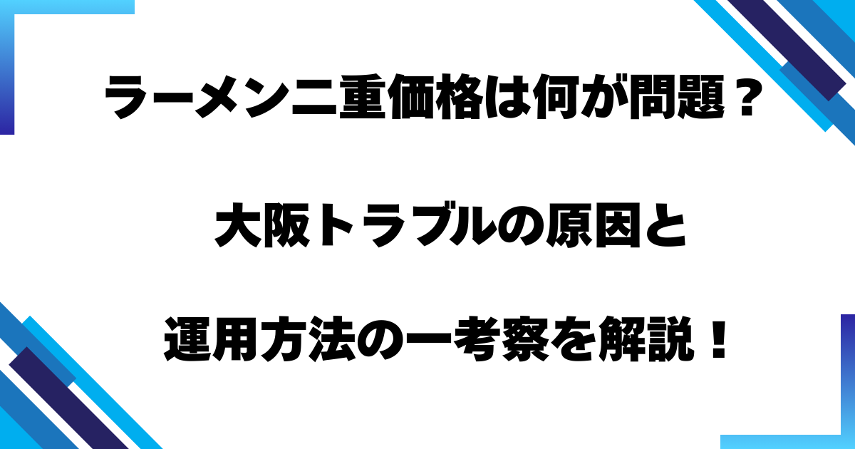 今回は、大阪のラーメン店で起きた二重価格トラブルについて詳しく解説していきたいと思います。