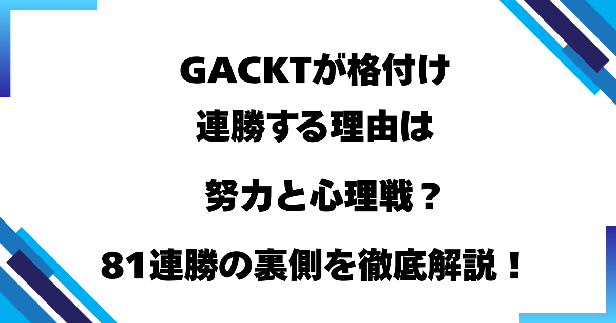 GACKTさんのストイックな姿勢とプレッシャーへの向き合い方が、81連勝という記録を支えているんです。