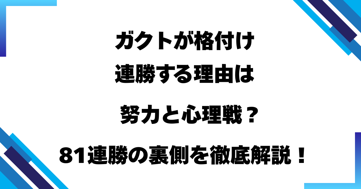 ガクト格付け連勝する理由はストイックな姿勢とプレッシャーへの向き合い方